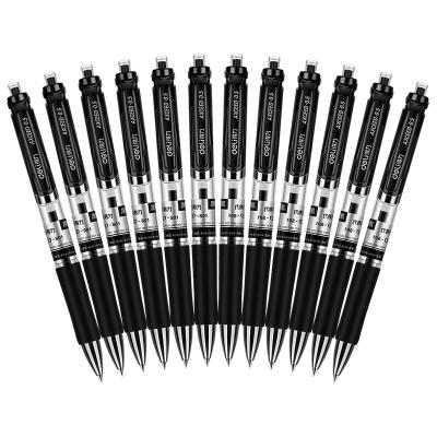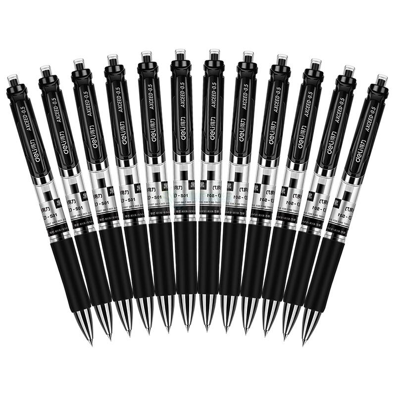 二手得力(deli)S01黑色0.5mm经典办公按动中性笔水笔 子弹头签字笔 12支/盒
