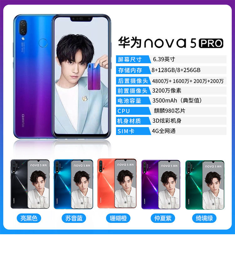 【二手】华为 nova5Pro麒麟980鸿蒙系统4G全网通老...