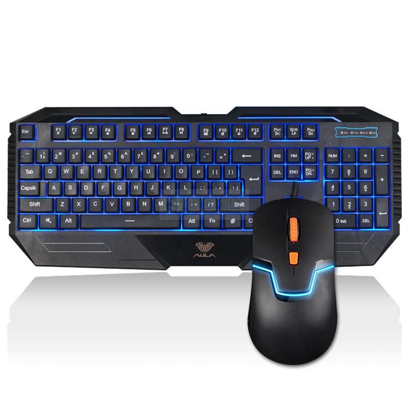 二手狼蛛(AULA)猎魂斩套装背光 有线键鼠套装 USB键盘鼠标 绝地求生吃鸡键盘 黑色版